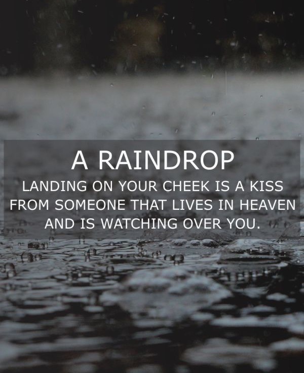 I have lost many loved ones over the years. I also love this quote too. The symbolism in it. When I was a kid my dad would say rain is Gods tears. Now I think it’s just kisses from those watching over us. I still think of thunder as God bowling though, and lightening as his strike…(also something my father told me lol)