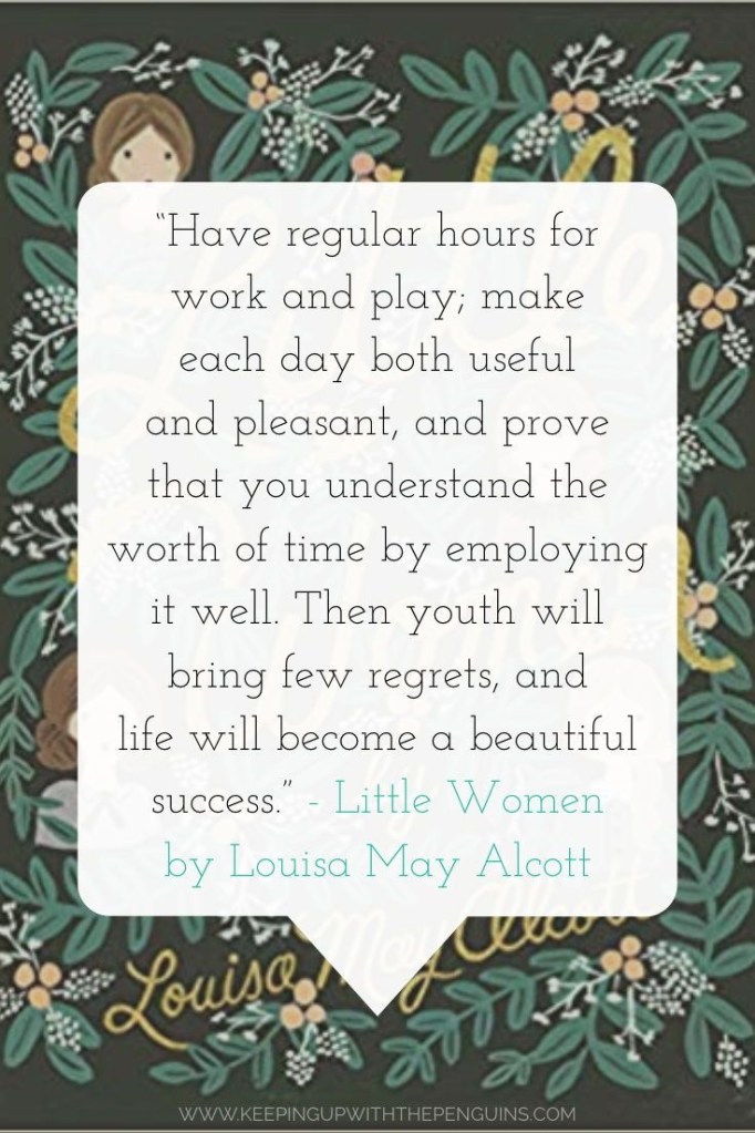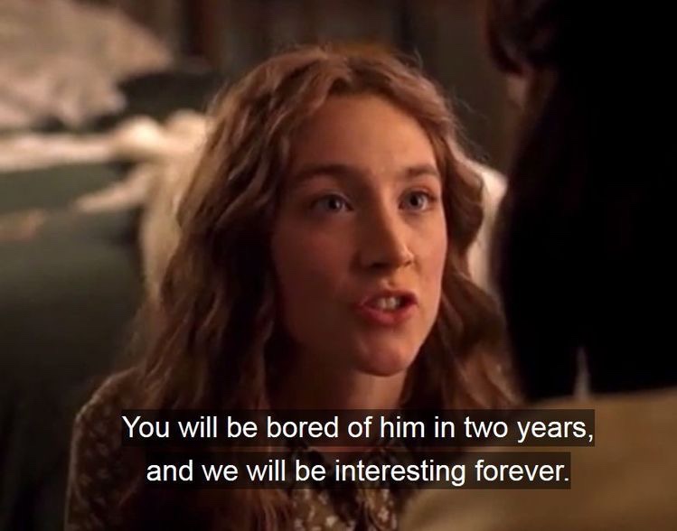 What a strong statement from Jo, my favorite character in these books. So true. I find myself irritated when fictional titles just present me with weak women, who need love to function. They are nothing without the man. I create strong women thatβs stand on there own and the man is just a equal partner. He is not there reason to function.