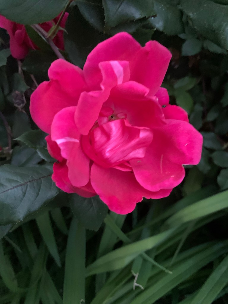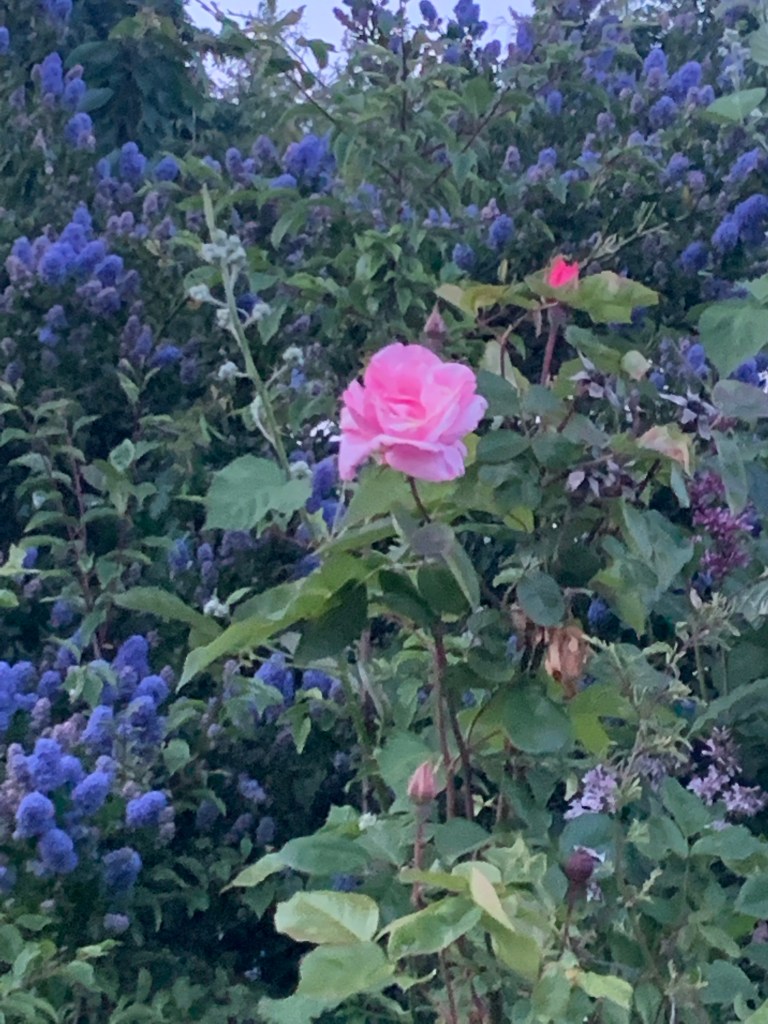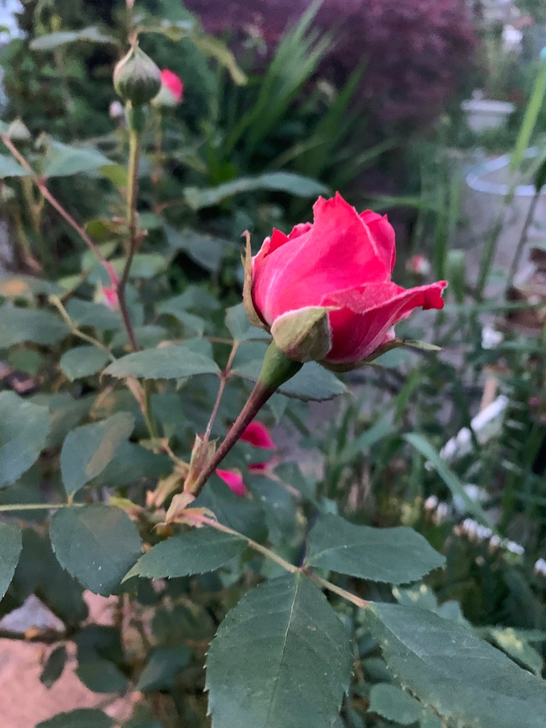 Sometimes after a long day of writing I go for a walk. Today I noticed all the roses are beginning to bloom. They are my second favorite flower with my first being lilac. I even got married in a rose garden!