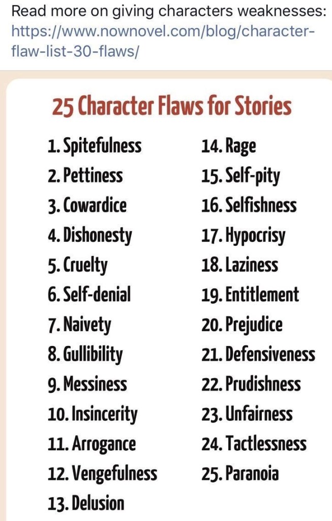 I have learned through the process of writing that character traits need to align with your theme, and story. They need to create realism and conflict. I have to say I’ve never thought about them that way. I always thought hmm what about this trait. Then my story didn’t move or flow because there was no action from the traits I had picked. No conflict. You need both when choosing traits.